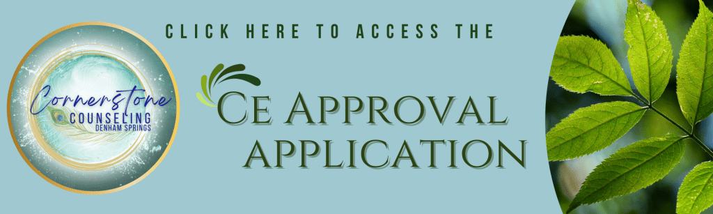 Cornerstone Counseling is recognized as a CE Approval Organization by the Louisiana State Board of Social Work Examiners (LABSWE). We offer a clear, supportive pathway for presenters, trainers and organizations seeking approval & visibility for continuing education programs for social workers in Louisiana.