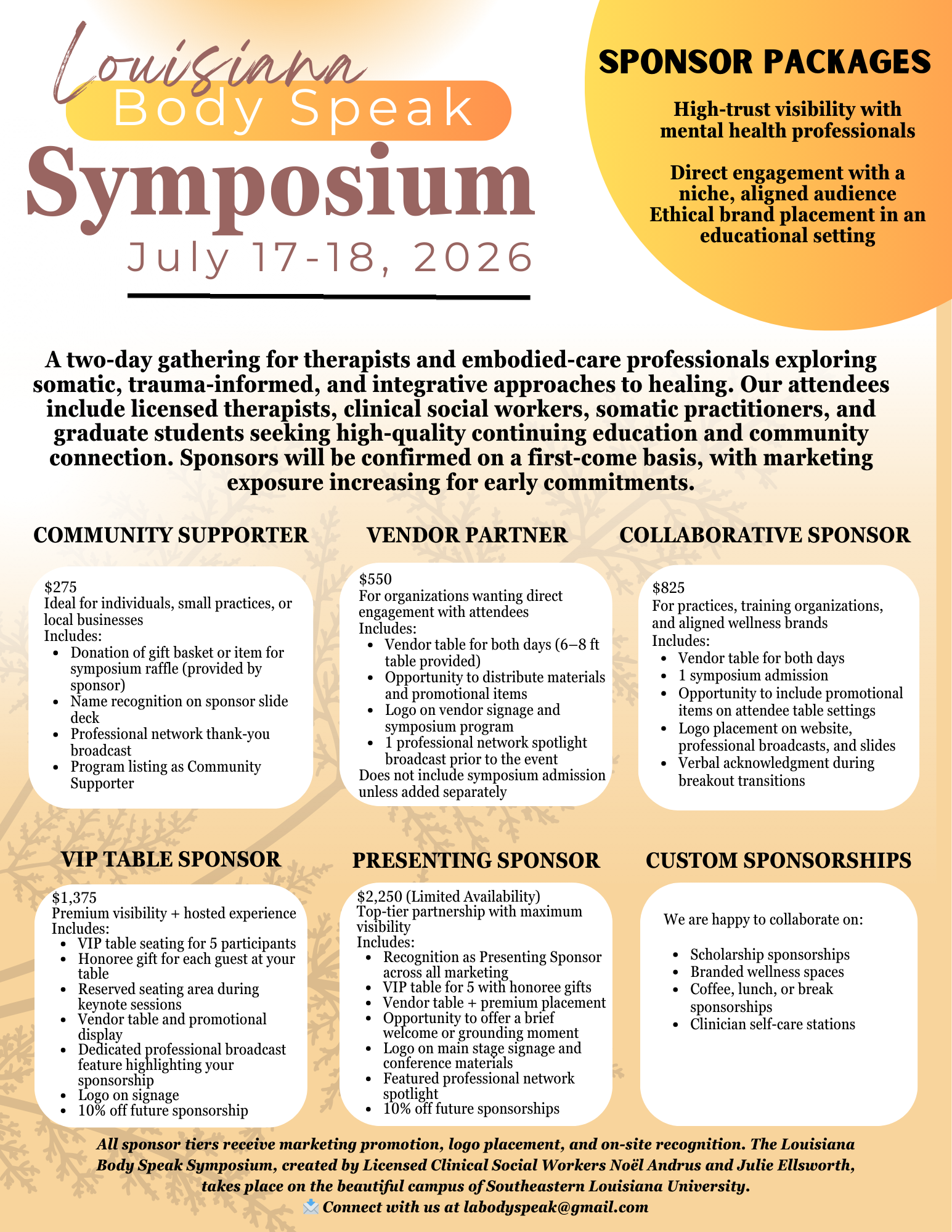 Registration to attend the Louisiana Body Speak Symposium opens Spring 2026.